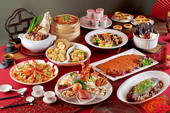 春節聚餐的詢問度也大幅提高,麗寶福容大飯店除夕至初二的「馬躍新春圍爐宴」,今年以龍蝦沙拉、明火爐鴨組成的前菜拼盤揭開序幕,其中「金絲鮑魚聚寶盆」以大甲芋頭、豬腳、烏參、魚皮等食材油炸後加入魚翅細火慢燉六小時,湯頭濃郁、香氣四溢。主廚李啟天表示,今年圍爐宴特別融入食補概念,其中「醬瓜黃金蜆蒸海石斑」以王功黃金蜆與現流海石斑蒸煮,肉質紮實、鮮甜提升;湯品「龍鰻花膠淮杞燉烏雞」使用金錢鰻、烏骨雞搭配山藥、紅棗、枸杞等藥材燉煮數小時,能益氣補血、為新年增添活力。甜點由手工葡式蛋塔鋪滿頂級燕窩華麗收尾,為全家團聚畫下甜蜜句點。