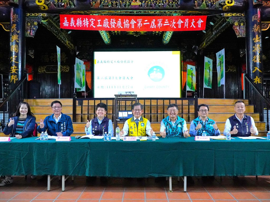 嘉義縣特定工廠發展協會今(27)日舉辦第二屆第3次會員大會,秉持初衷持續協助縣內上百家農地廠商積極申請特定工廠登記,嘉義縣已有243家取得特定工廠登記,而陸續加入本會廠商已達到130餘家,目前持續依工廠管理輔導法輔導會員走向用地合法化,亦配合政府法令朝向永續合法經營。