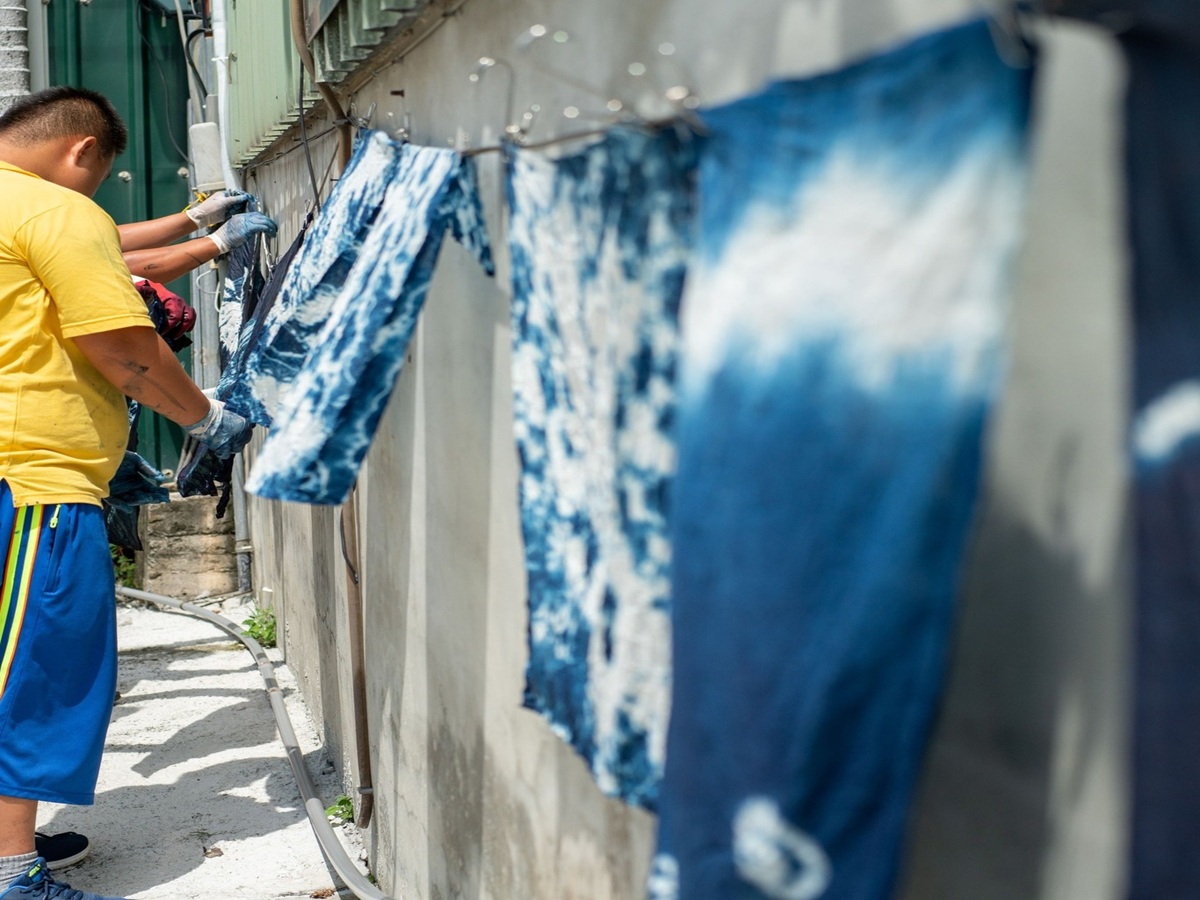 來自南迴公路的藍染抱枕,是白永恩神父社會福利基金會台東金崙友善工坊身心障礙青年以耐心浸染、曝曬,把山海之藍與日常生活節奏留在布上,心智障礙的阿龍,自小與山海為伴,雖然從小缺乏人際互動刺激,創作卻充滿海的遼闊與山的胸襟,專化為強大的藝術創作力,和其他學員一起創作出令人讚嘆的作品,義賣所得將投入台東身心障礙青年工作培力與自立服務,送禮也把溫暖心意一併傳遞出去。這些藍染作品目前也在頂新和德文教基金會「文房・文化閱讀空間」(臺北市中正區臨沂街27巷1號)展售,歡迎到現場體驗。