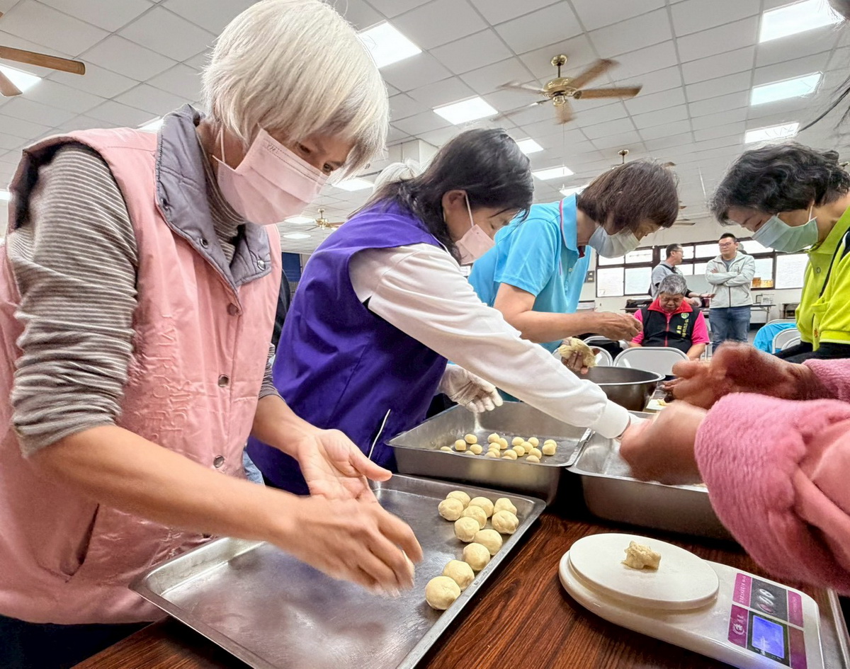 進入實作階段後,現場氣氛更加熱絡,參與民眾一起揉製油皮、油酥,包入甜美的地瓜內餡,並將酥餅送入烤箱,現場瀰漫著溫暖的烘焙香氣。烤好的地瓜酥餅金黃飽滿、層次分明,大家一邊試吃、一邊交流作法,互動有趣又熱烈。