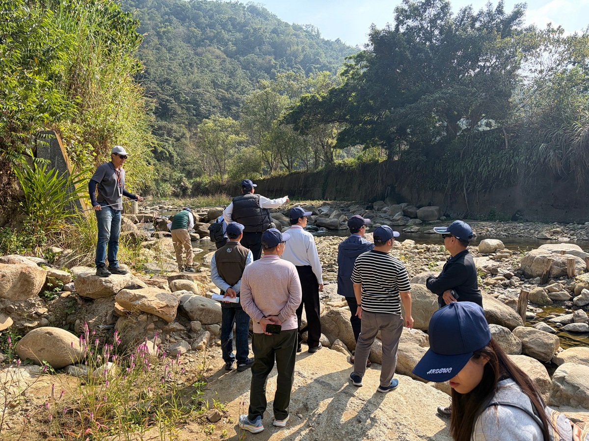 為推動各工程機關2050淨零排放,行政院公共工程委員會於114年12月5日邀集國發會、環境部、水利署、農田水利署、漁業署、林業保育署等相關人員到農業部農村發展及水土保持署辦理之國姓鄉種瓜坑進行公共工程節能減碳訪視。訪視行程包括簡報、現地勘查、查看文件與討論會議,讓各工程機關能更完整了解農村水保工程的減碳作為及成效。