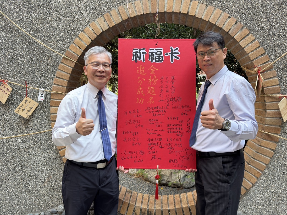 此外,現場亦由校長、家長及高三學生親筆寫下的祈福卡,並懸掛於學務處前隨風飄揚,象徵心願起飛、夢想展翅。活動最後播放家長預錄的祝福影片,五位學生家長的鼓勵話語讓同學深受感動,紛紛表示將在學測前全力以赴,不留遺憾。李明昭校長於結束前祝福所有高三同學,以實力與好運共同締造亮眼成績,在人生舞台上昂首展開新旅程。