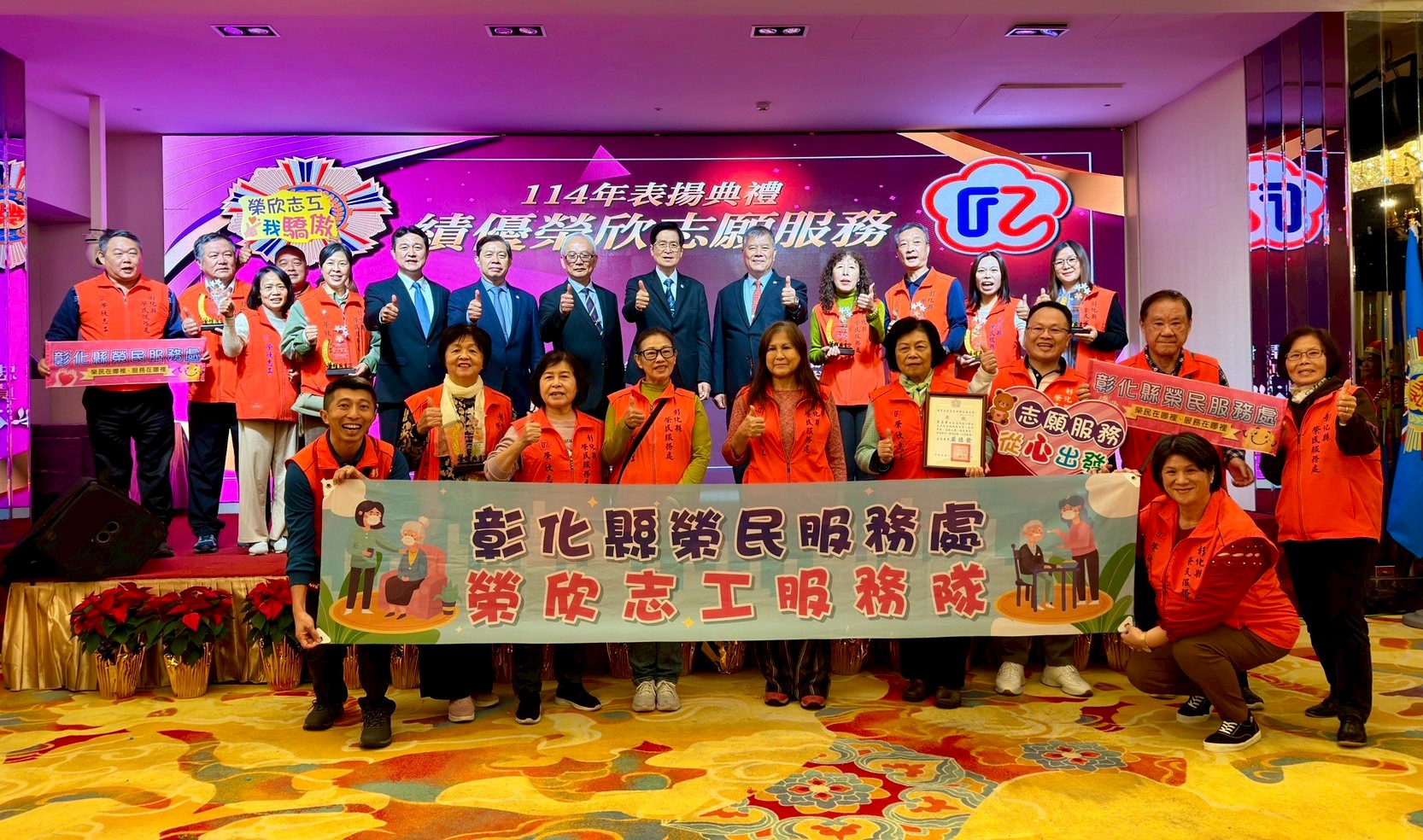 輔導會舉辦「114年績優志工表揚活動」,彰化縣榮民服務處志工團隊由處長邱文俊率領,共同參與這場年度盛會。今年彰化榮欣志工表現亮眼,本次榮獲績優人員多達9名,涵蓋新進志工、績優志工、資深志工、服務組長及屆退組長等多個項目,充分展現志工長期投入服務的熱忱與成果。