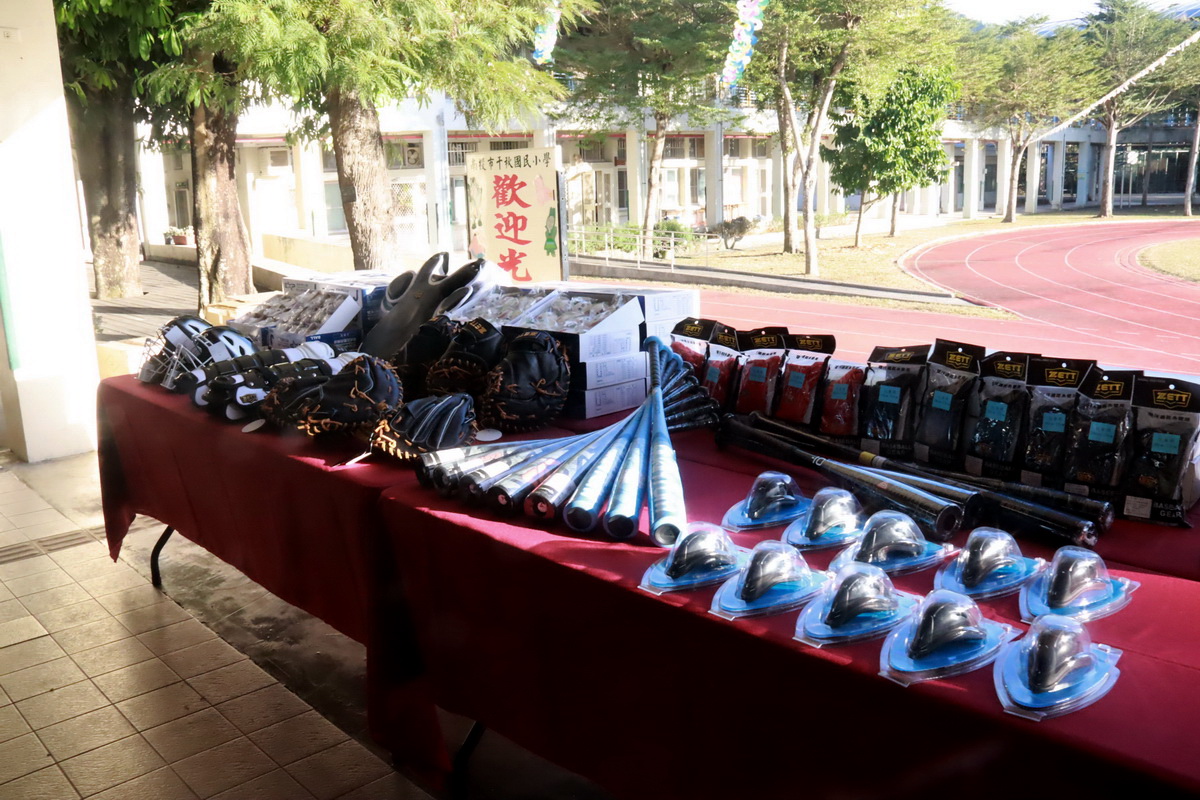 企業廠商贊助贈送一批球具給千秋少棒隊。(記者扶小萍攝)