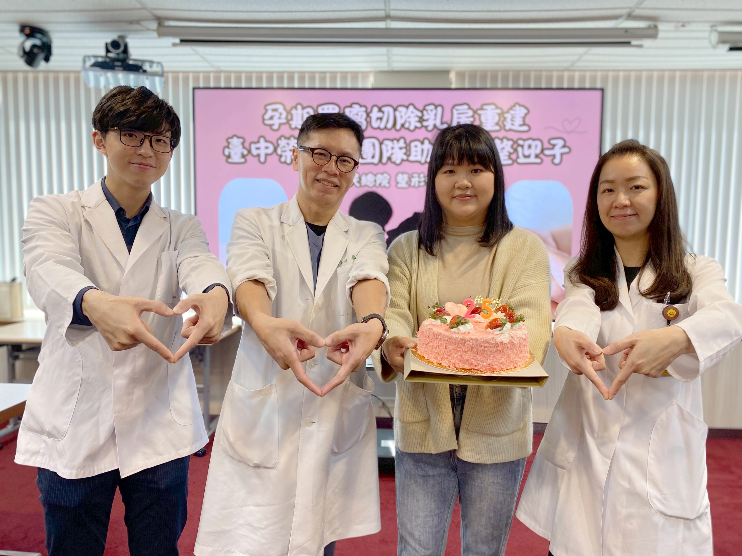 陳小姐指出,原以為單純的乳房腫瘤治療,在寶寶意外報到下,變成治療、重建、生產等複雜狀況,還好臺中榮總團隊有乳房外科、整形外科、婦產科和新生兒醫療團隊全力照顧,讓自己無後顧之憂,不會顧此失彼,能治療乳房腫瘤、重建乳房,以完整的狀態生產迎接兒子,感謝醫療團隊。