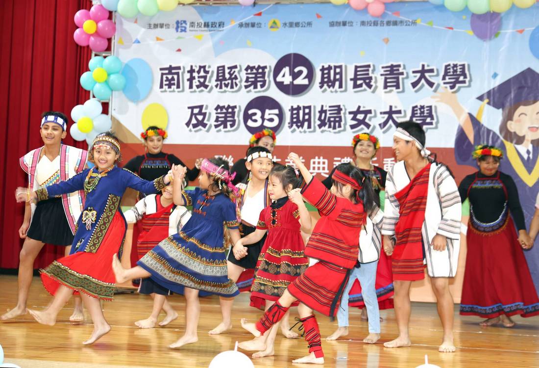 展現多元課程成果、逾3千學員受惠的長青及婦女大學結業典禮,於11日上午在國立水里高級商工職業學校隆重登場,以熱情的「原住民迎賓舞及歌謠傳唱」揭開序幕,縣長許淑華親臨主持,包括縣議員陳淑惠、水里鄉長葉銘豐、國姓鄉長邱美玲及水里商工校長許文雄等來賓出席。