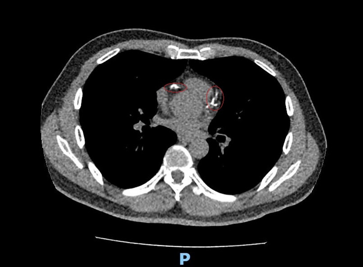 李學林表示,林先生日前接受肺癌篩檢時意外發現心血管鈣化,但無法確認是血管內或血管外鈣化。因患者平時已出現胸悶症狀,進一步做心臟冠狀動脈電腦斷層,確認為3條主要冠狀動脈血管內鈣化狹窄達85%以上,若未及時處理,隨時可能引發急性心肌梗塞。