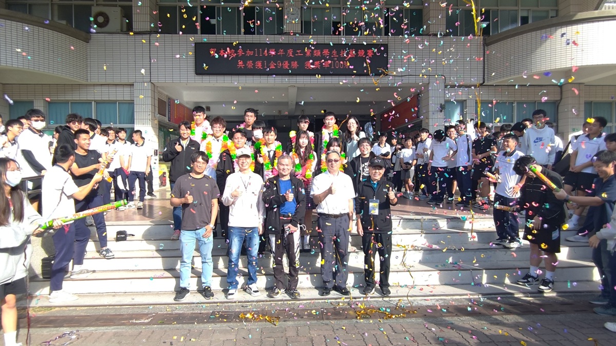 「歡迎英雄凱旋!」當載著參加114學年度全國工業類學生技藝競賽選手的專車緩緩駛入國立員林崇實高工校門,震耳欲聾的鞭炮聲瞬間響徹雲霄,全校師生夾道歡迎,爭相為這群「崇實之光」獻上最熱烈掌聲。