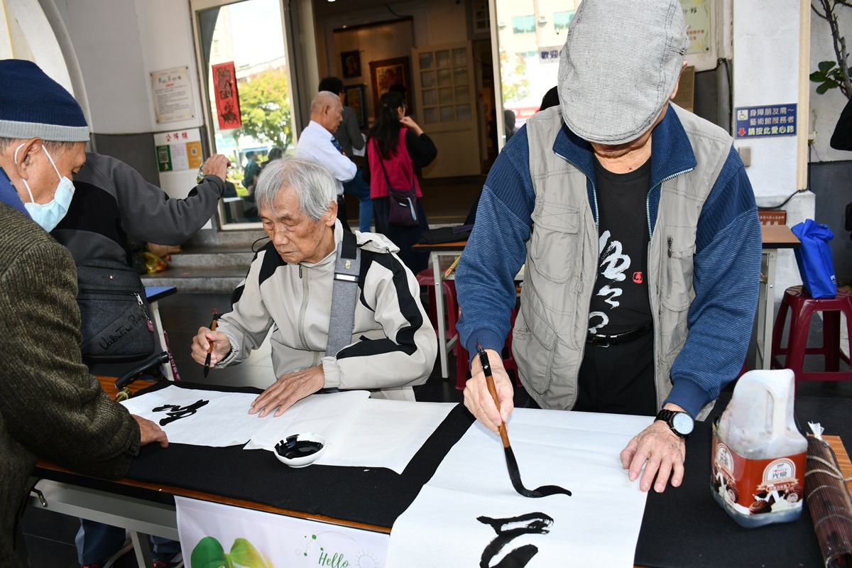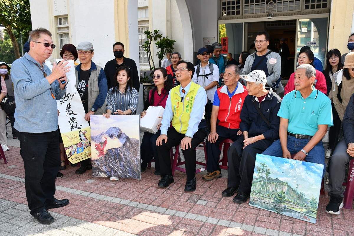 12日到場力挺的藝術家,在彰化縣美術學會理事長林鴻銘、彰化縣藝術家學會理事長陳楣豔、彰化縣逸晉書道學會理事長蔡銘峰以及建築師畫家羅榮源等人的帶動下,除了致贈具彰化意象的字畫、書帖外,更與林市長共同揮毫,氣氛熱烈,將活動推向最高潮。