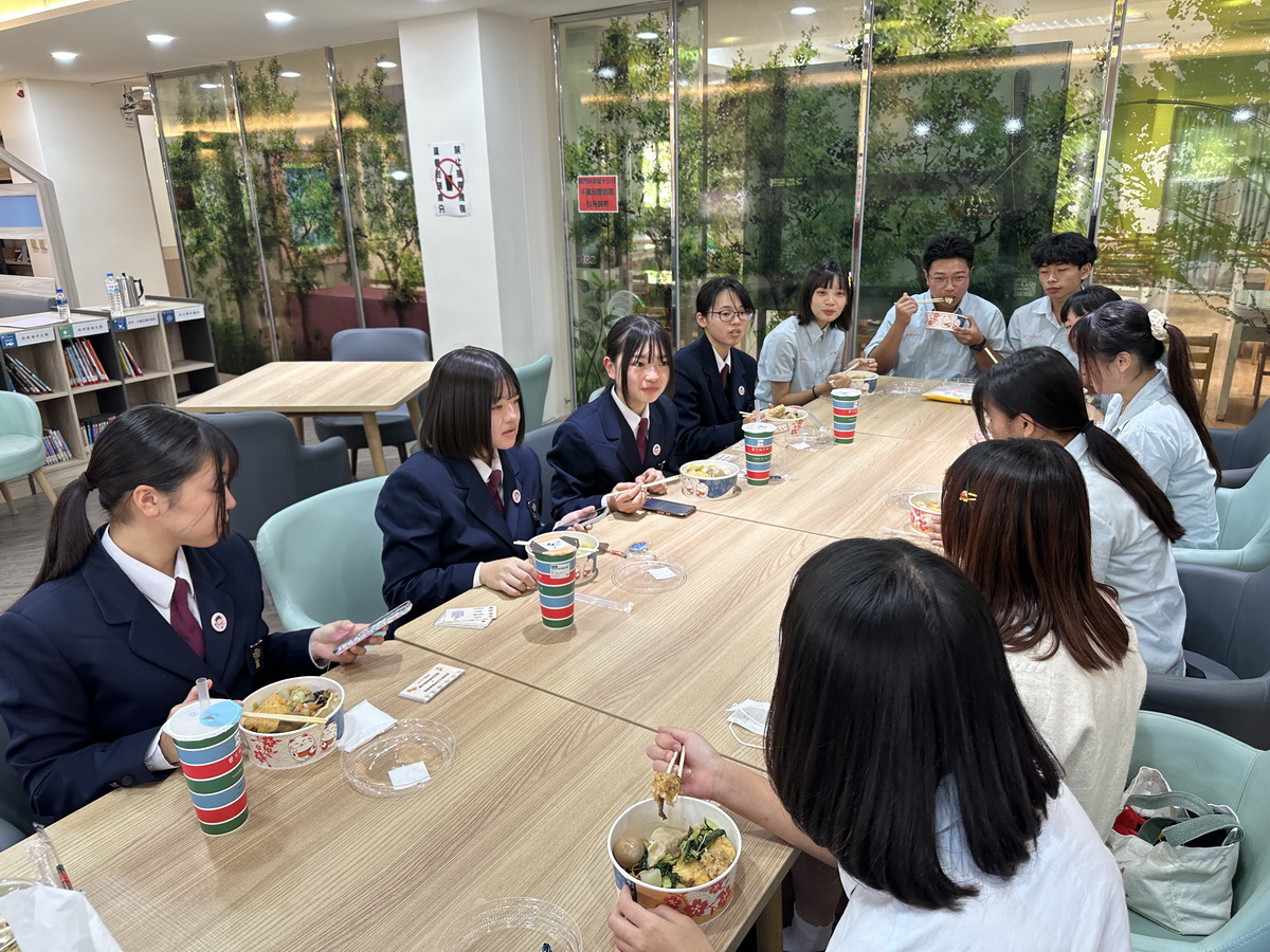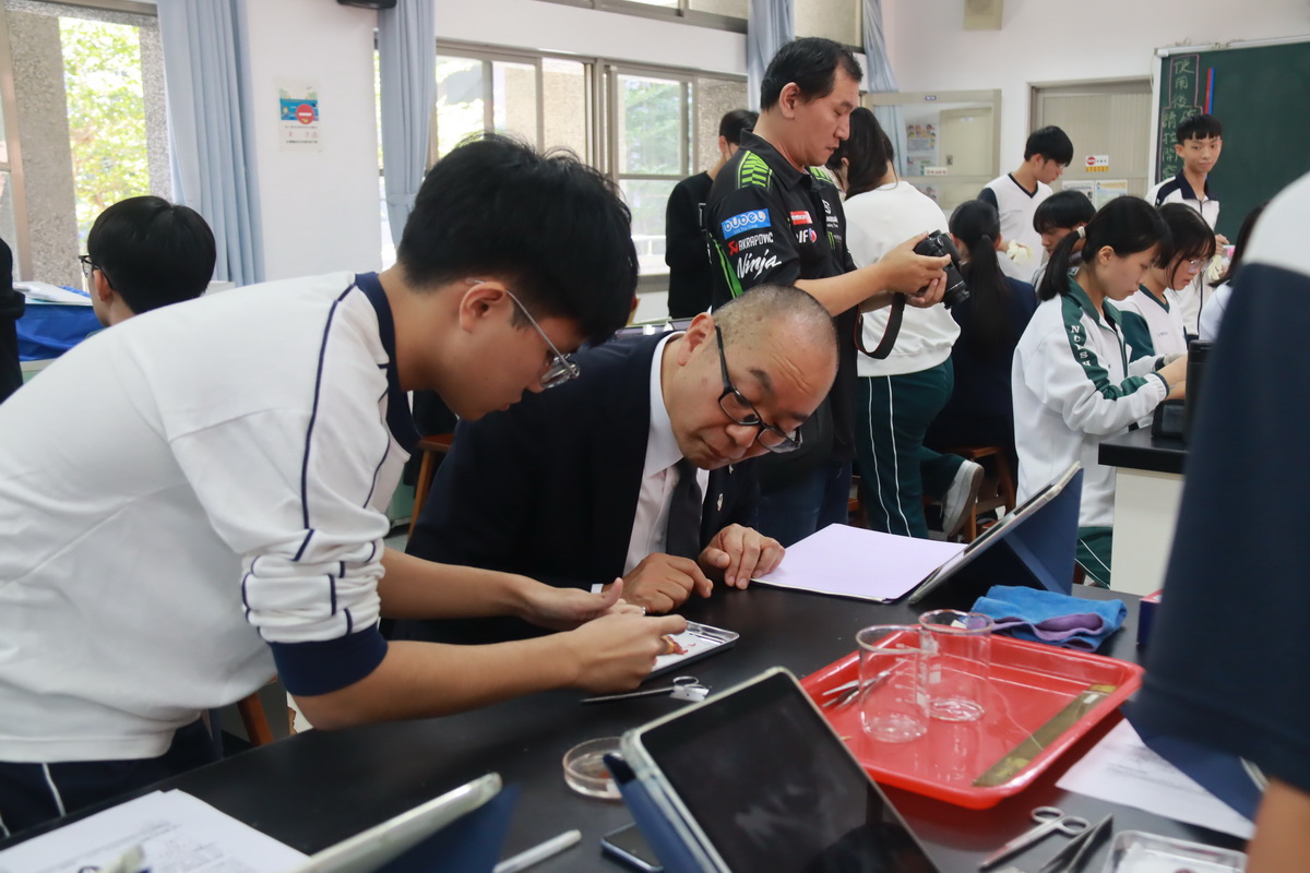 除了學術交流中興高中也為日本師生準備豐富的文化體驗活動。日方師生一同享用富有臺灣特色的學校營養午餐,體驗在地校園生活,餐敘中彼此交換日常生活種種,瞭解不同文化。下午天草高校學生更親身參與中興高中生物實驗課程雞心解剖,並參觀校內合作社,比較臺日校園環境的異同。