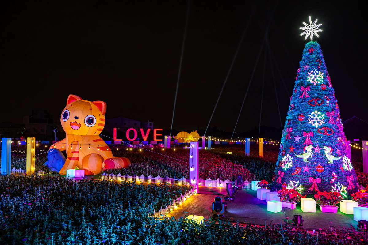 今年音樂聖誕晚會以「貓咪的世界」為點燈主題,搭配浪漫「花海步道」,將僑光國小周邊妝點得如夢似幻。璀璨「風火輪」煙火升空,更是驚艷全場,成為吸睛的聖誕活動。