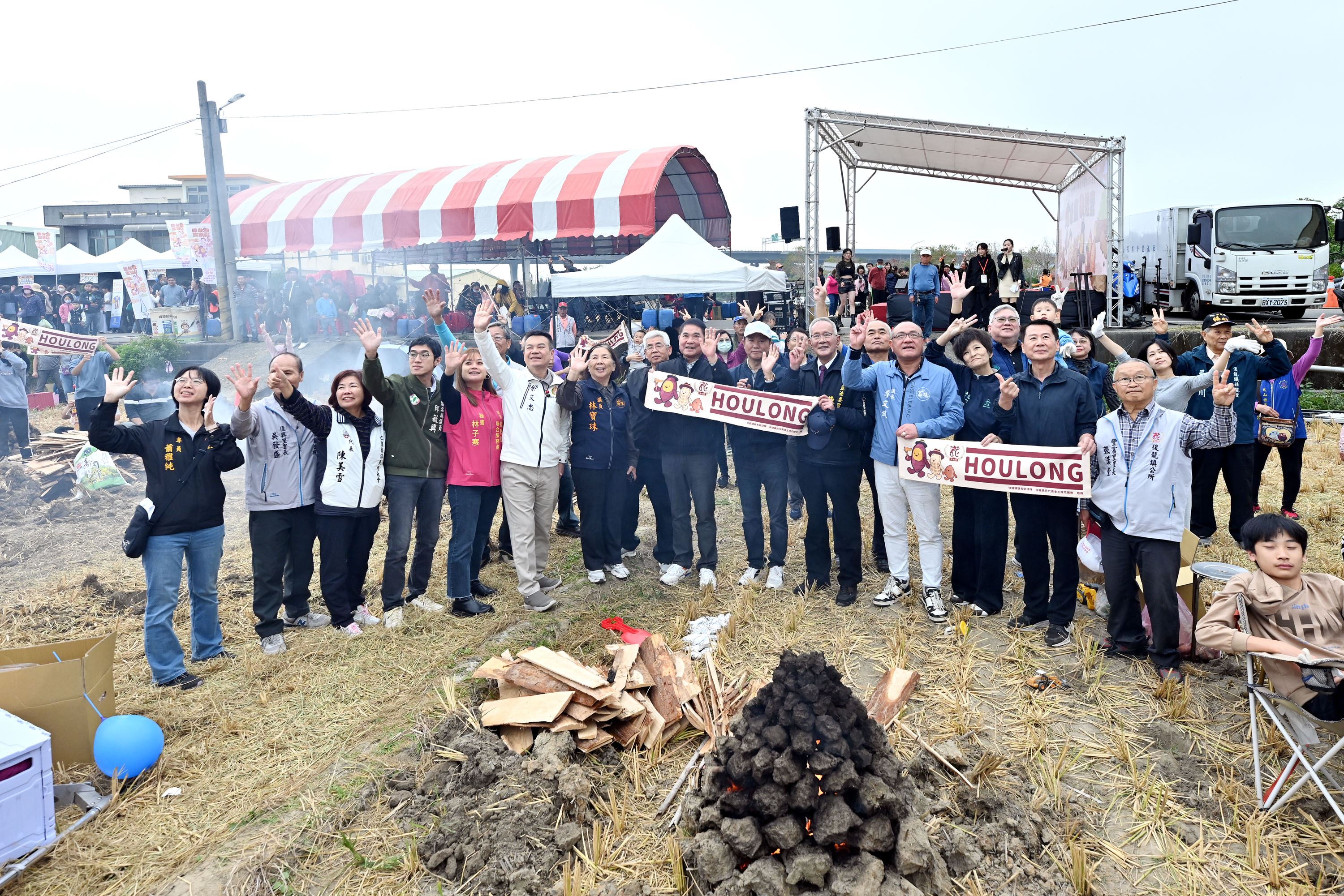 縣長鍾東錦、議長李文斌、立委陳超明、議員林寶珠、邱毓興、鄭秋風秘書、後龍鎮長謝清輝、代表會主席花麗卿、各里長、代表及前後龍鎮長朱秋隆、苗栗市長余文忠上午都到場與鄉親同樂。一行人還走到田裡與焢窯的鄉親寒暄,並品嘗公所準備的特色美食,重溫過去農業社會在秋收後的農田景象和田園之樂。