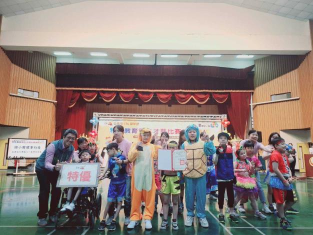 國小團體賽特優由大灣國小集中式特教班獲得,以「臺灣尋寶趣」為題,從動畫「寶可夢」發想,融合臺灣多元文化與歌謠。演出將〈丟丟銅仔〉、〈高山青〉、〈天公落水〉等童謠與〈寶島曼波〉、〈海洋之心〉等流行歌曲串連成趣味故事劇。孩子們化身訓練師與各地精靈,展開一段精彩的環島尋寶之旅。