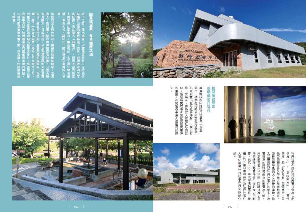 翻開「屏境拾光」,可走進新園海洋航運園區,在夕陽映照下,感受海港映現的銅金色澤;深入大武山山林,於靜謐碧空中呼吸自然;聆聽恆春文化中心民謠館月琴低吟,唱出土地的生活旋律;漫步勝利星村午後磚紅色巷弄,沉浸於恣意生長的創意能量。隨著落山風,前往石墨藍灰的風域半島,讓情感在四重溪溫泉中緩緩升溫;走進看海美術館,感受藝術與自然交織的策展魅力,踏著靜海沙灘,勾勒出屬於屏東的日常風景。