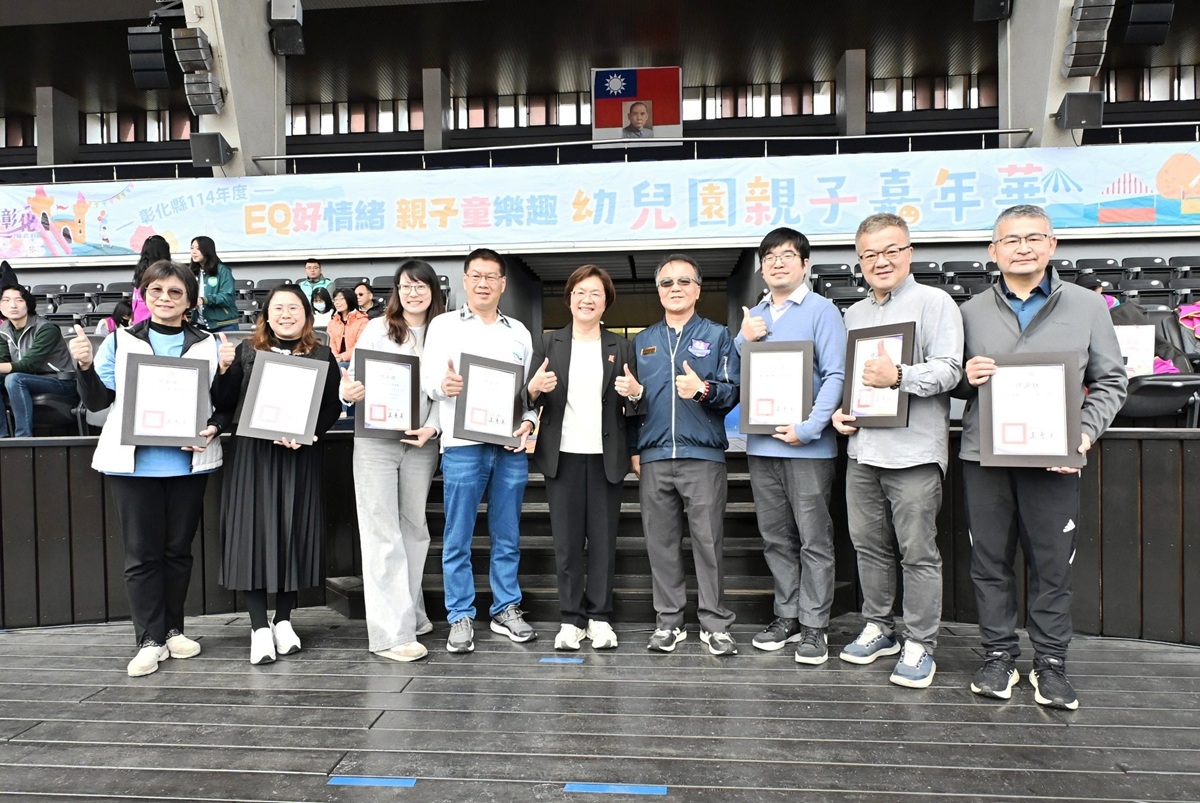 彰化縣政府於今日上午在彰化縣立體育場辦理彰化縣114年度幼兒園親子嘉年華,活動以「EQ好情緒 親子童樂趣」為主題,融入幼兒黃金成長期最重要的能力—SEL(社會情緒學習),吸引眾多家長與小朋友熱情參與,彰化縣長王惠美與會。開幕儀式中,推出象徵情緒的4顆彩球,象徵在親子陪伴下共同培養情緒與能力的理念,現場氣氛溫馨而富教育意義,本次活動也在這象徵美好開端的 SEL 情緒彩球啟動下正式展開。