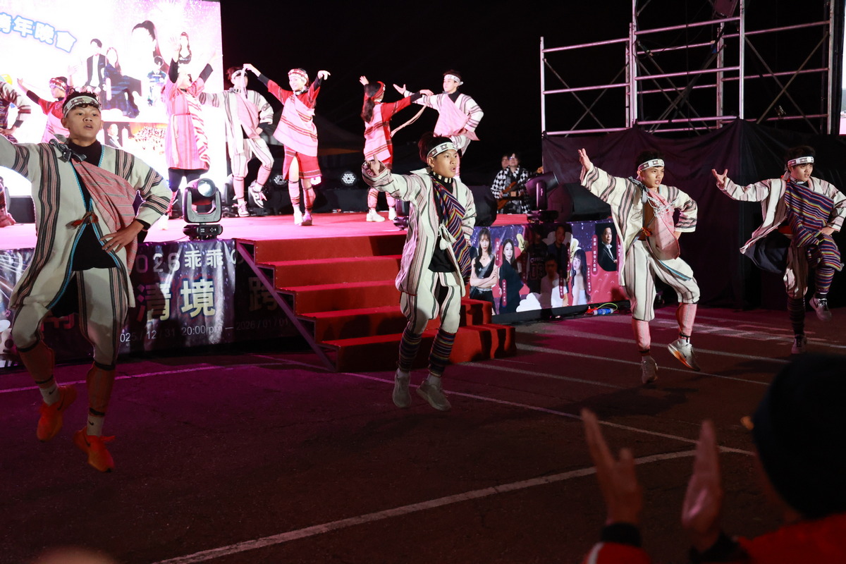 清境跨年晚會由富邦應援團長崔維斯與蓁蓁聯手主持,節目緊湊、高潮不斷,在地原民團體全世煌、喜列克文化藝術團及原動力樂團開場,充滿生命力的原民表演,點燃熱情。接著,台北長青管樂團以優雅弦樂搭配專業星空導覽老師,帶領民眾進行「熄燈星空導覽」,眾人仰望浩瀚銀河,感受宇宙的靜謐與震撼。