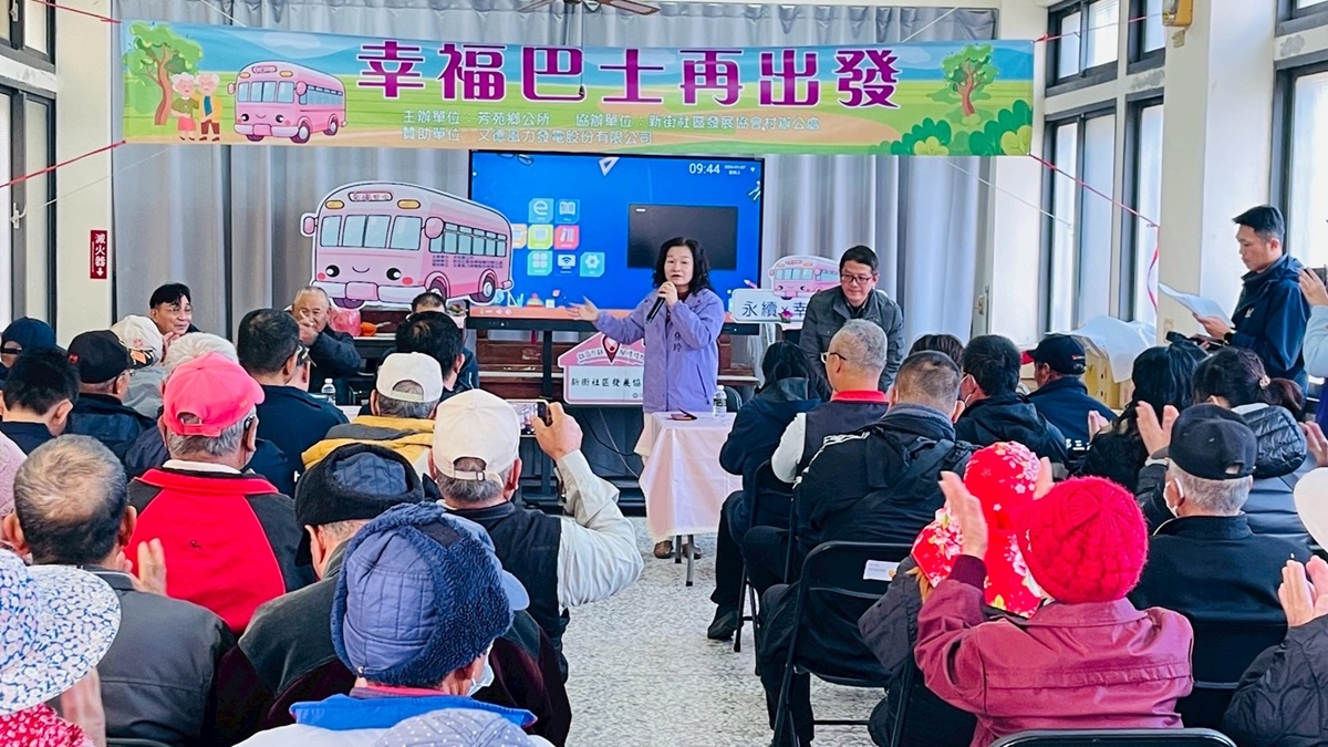 芳苑鄉公所為了讓幸福巴士能持續為鄉親服務,尋求企業贊助,今年由又德風力發電公司贊助,於1 月 7 日上午在新街村玄武宮舉行幸福巴士續航儀式,向鄉親宣布新年度幸福巴士服務正式啟動,繼續照顧偏鄉民眾的交通需求,持續守護偏鄉長者與弱勢家庭的交通需求。