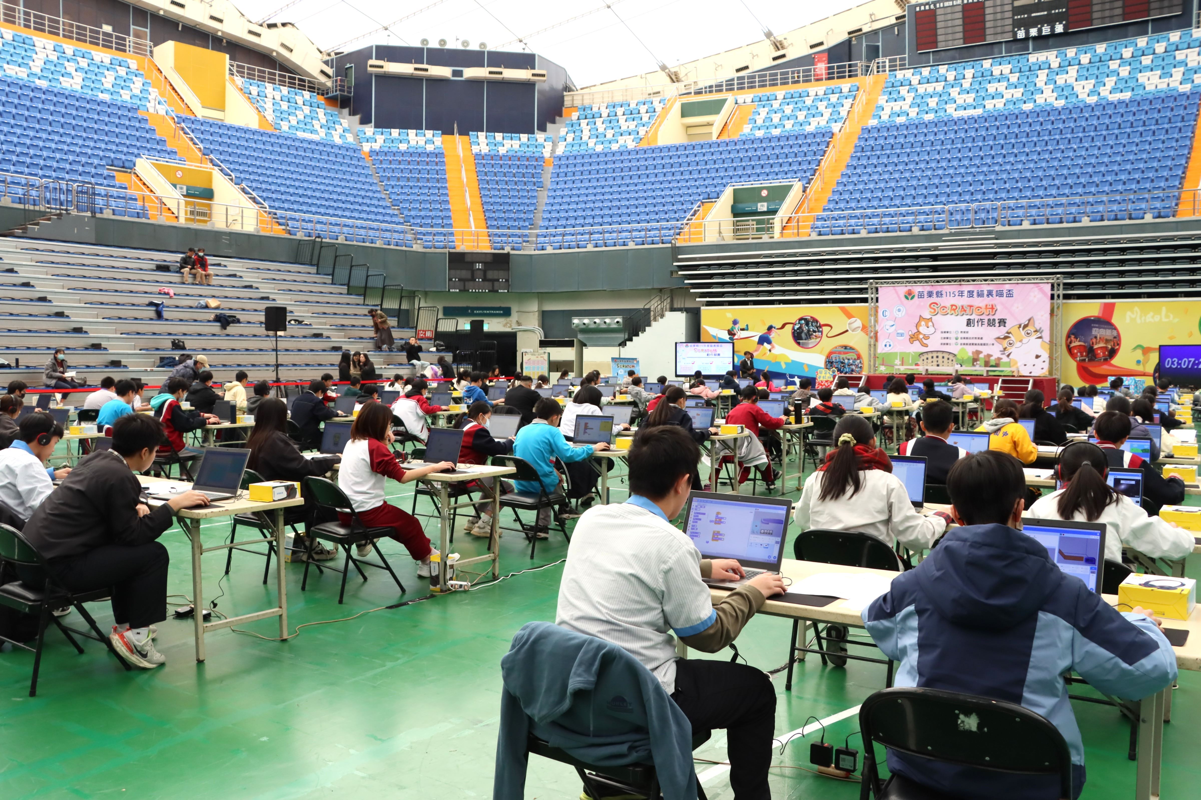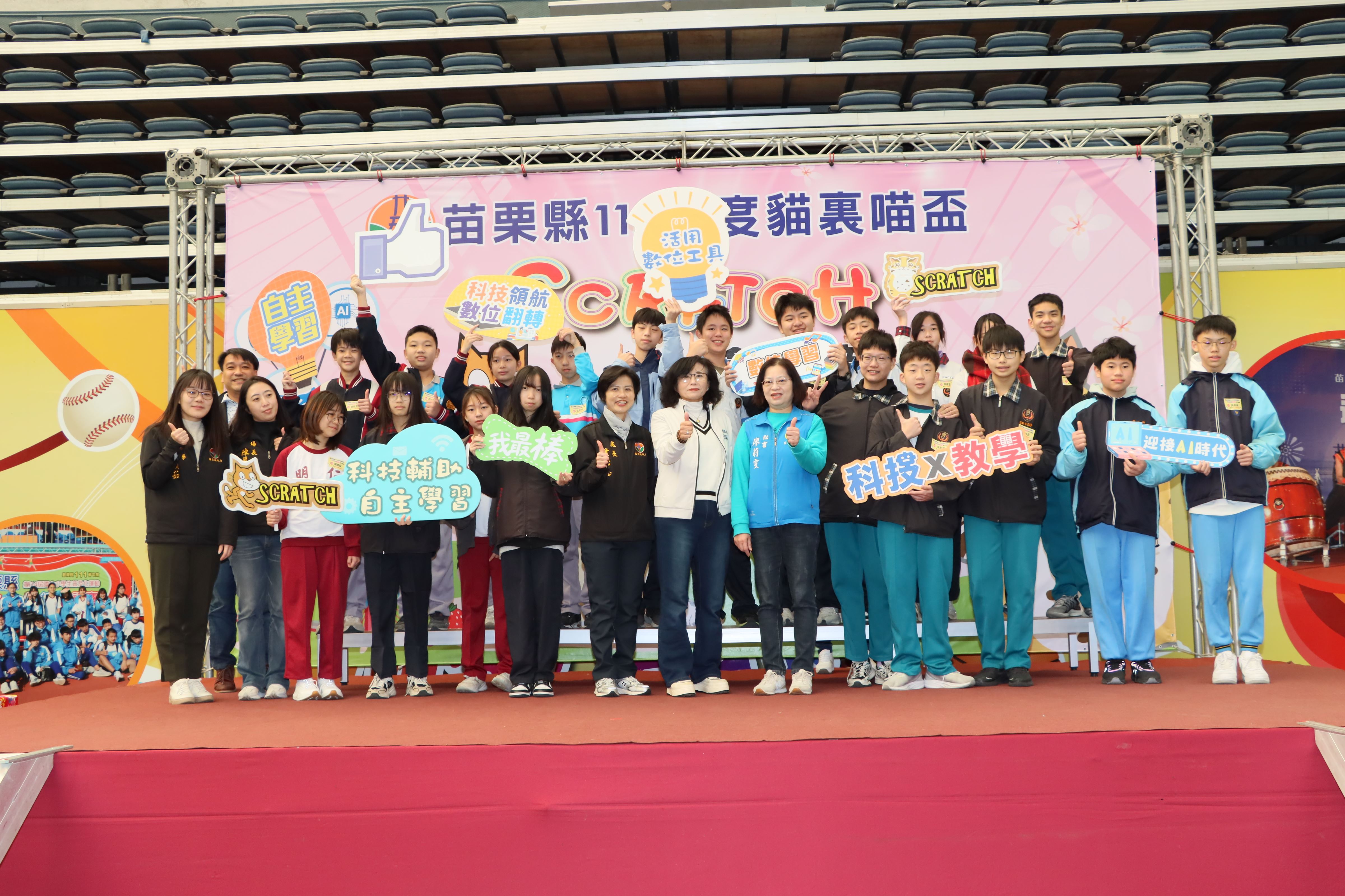 苗栗縣115年度「貓裏喵盃SCRATCH創作競賽」現場實作複賽,於今(7)日在苗栗縣立巨蛋體育館正式展開。本次競賽吸引全縣共115隊報名線上初賽,經過激烈角逐,最終由44隊脫穎而出晉級今日的現場實作複賽。副縣長邱俐俐與苗栗市長秘書羅莉雯、教育處長葉芯慧等為參賽選手加油打氣,期許能夠獲得佳績。