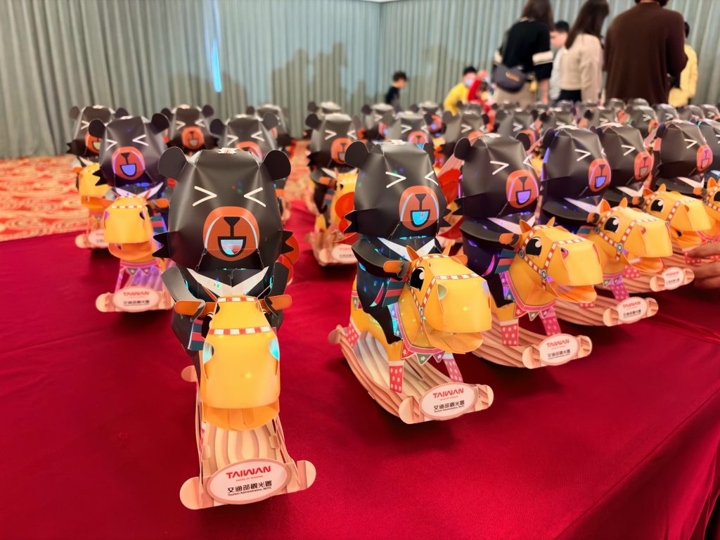 觀光署表示,相較於主燈的壯麗,小提燈造型則更具趣味及親和力,今年首度以2026年生肖「馬」和臺灣觀光代言人「喔熊」結合,以喔熊騎木馬的造型展現童趣,命名「喔熊馬抵嘉」,融合嘉義縣名,逗趣又可愛。