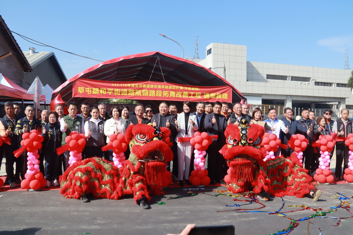 草屯鎮和平街位居鎮中心,早年巷道路幅狹窄、車流繁雜,成為鎮內瓶頸道路。鎮公所積極爭取獲國土署、縣府補助,加上公所自籌,進行和平街道路瓶頸路段拓寬改善工程,歷時年餘終於10日在國土署中區分署長陳俊雄、縣長許淑華、鎮長簡賜勝及94歲地方耆老簡阿嬤、議員等各界嘉賓剪綵後步行通過新道路,通車典禮熱鬧歡騰。