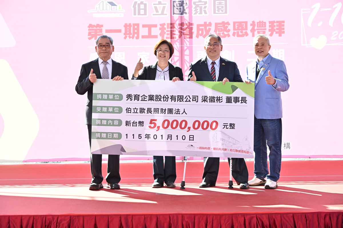 雖然第一期建築物已矗立,但挑戰尚未結束。伯立歐家園第一期總建設經費達 1.8 億元,截至去年(114年)11月底尚有2,482萬元的資金缺口,且各項護理、生活設施設備仍待完善。今日活動有多位企業家與藝術家率先響應,帶頭填補缺口!包含秀育企業梁徽彬董事長捐款500萬元;藝術家卓麗秋師生聯展捐出100萬元;社團法人彰化縣信德慈善會捐款10萬元;樂麥咖啡認養10萬元的護理床。懇請各界持續支持,每份心意都將在家園永久留名,成為守護身障者的力量。