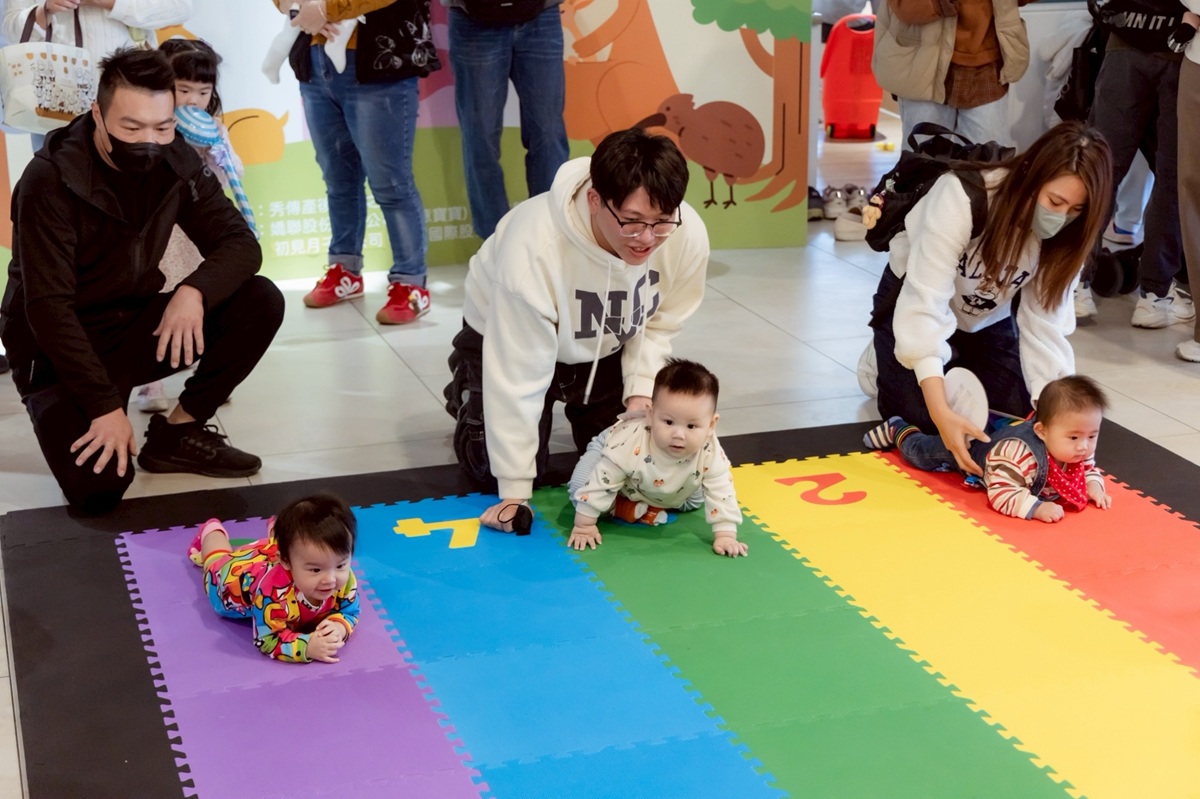 本次活動依據寶寶各階段的發展精心設計,【小寶寶爬行大賽】:這是全場最受矚目的「萌力賽場」。為了引導寶寶完成爬行這項重要的發展任務,媽媽們各出奇招,現場不僅出現「香蕉誘惑戰術」,更有人拿出遙控器、手機等神隊友,看著寶寶們從東張西望到全力衝刺,最終冠軍以 16 秒的驚人表現「閃電衝線」,專業醫護團隊也與家長一同為孩子健康成長的體魄喝采。