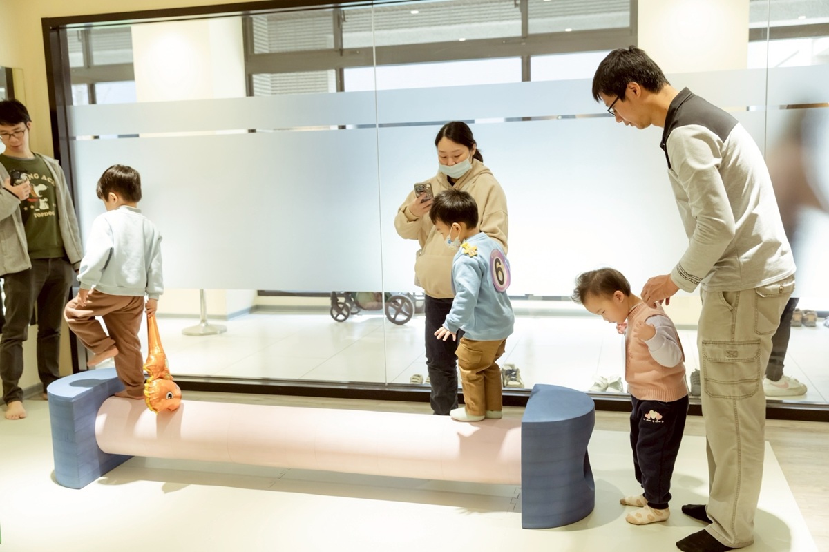 還有【大寶寶體能訓練區】: 針對已進入快走與跑步階段的孩子,透過障礙挑戰展現協調性與成長力,看著昔日懷中的小寶如今充滿活力地奔跑,家長眼神中盡是感動。