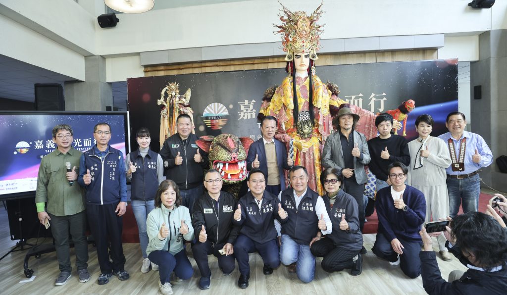 記者會開場由三味堂創意木偶團隊帶來「王孫大使」精華演出,該團隊為台灣燈會打造大型戲偶與布袋戲造型,把嘉義在地文化元素帶進燈會舞台。