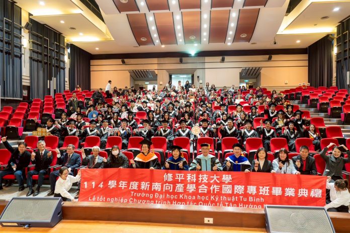 修平科技大學工業工程與管理系於114年1月10日舉行「新南向產學合作國際專班」第一屆畢業典禮,共有51位畢業生順利完成學業,在師長、家長與親友的祝福下,迎接人生重要的學習里程碑。典禮現場氣氛溫馨感人,展現修平科大深耕新南向國際人才培育與產學合作的成果。