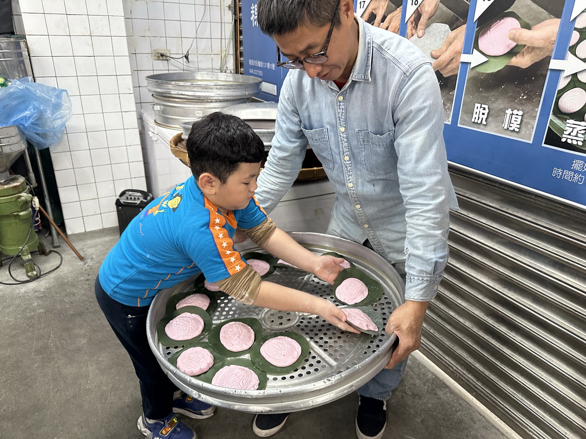 最後一道手續是上蒸籠,經過30至40分鐘後,一個個不同形狀的粉紅粿出爐,都是孩子們成長中美好的記憶。