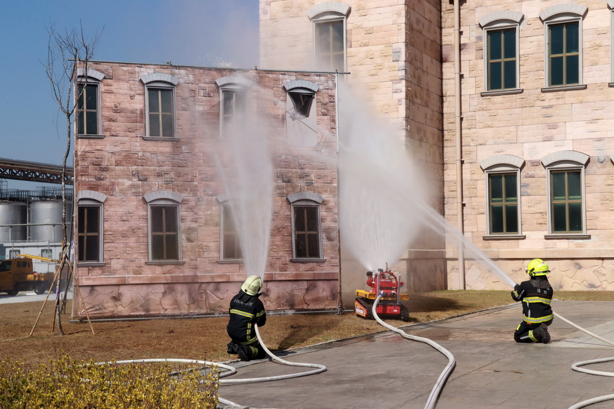現場特別投入無人機進行火場偵查,將即時影像回傳指揮中心,並搭配消防機器人近距離噴水降溫協助滅火,提升決策效率,更大幅降低消防人員深入火場的風險。