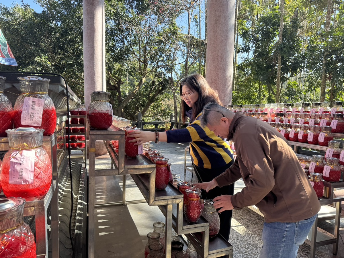 祈福行程途經日月老茶廠,導師們特別準備象徵「甘甜回甘、苦盡甘來」的包種茶糖,分送給考生,寓意在學測中沉著應試、甜美收穫,學生們能順利進入自己心目中的理想大學。小小的心意,承載的是滿滿的祝福與期待。