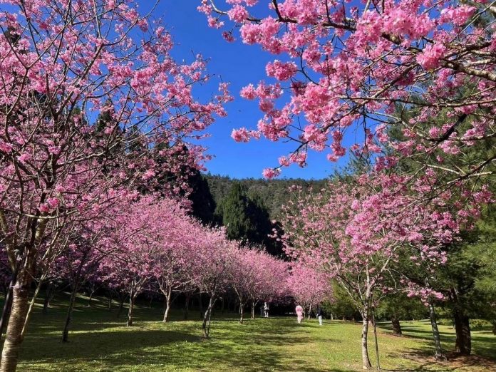 走進校園,群山環繞的翠綠草地正被紅、白、粉三色交織的櫻花海逐步覆蓋。校園內栽植超過3,000棵名貴櫻花,目前山櫻花與八重櫻已率先展露艷紅姿態,綻放約二成的花蕾。後續富士櫻、吉野櫻與昭和櫻也將陸續加入這場自然接力,讓整座校園在2月22日前,都沈浸在浪漫的氛圍中。值得期待的是,交通部觀光署日月潭國家風景區管理處今年更透過千櫻園改善工程新植1,200棵櫻花樹,不僅豐盛了當下的視覺景觀,也為未來的櫻花盛景種下了更多期待。