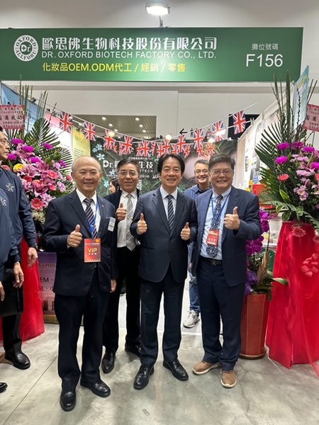 歐思佛生技創辦人英國牛津大學博士陳耀寬教授特別感謝賴總統親自蒞臨指導以及台中市經發局長張峰源以及歐思佛生技團隊的努力!陳耀寬教授由學界轉生技產業領軍歐思佛生技(Dr. OXFORD,生技醫療股7519)參與「幸福產業區」展示其卓越研發成果與大台中市民共享好產品。陳耀寬教授表示本次展覽,將聚焦其最具代表性的長銷明星產品農業生技產品「台灣首創生薑洗髮精」的最新升級版。這款產品上市行銷近二十年,始終堅持對品質的承諾: