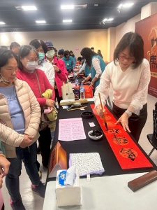 「杙馬當纖」不僅是一句朗朗上口的祝賀語,更巧妙結合了大里地方文化歷史與纖維工藝的精神,展現出在地文化的深厚底蘊與創新活力。活動現場邀請十位書法名家現場揮毫,與民眾共度充滿藝文氣息的新春佳節,讓大小朋友都能在歡樂氛圍中感受傳統藝術的魅力。農曆春節向來是國人最具年味的節日,本活動特別提前舉辦以營造熱鬧喜慶的氛圍,讓大家感受新年的歡騰氣息。現場更準備了三百份春聯供民眾索取,祝福大家喜氣滿滿、迎馬年行大運。