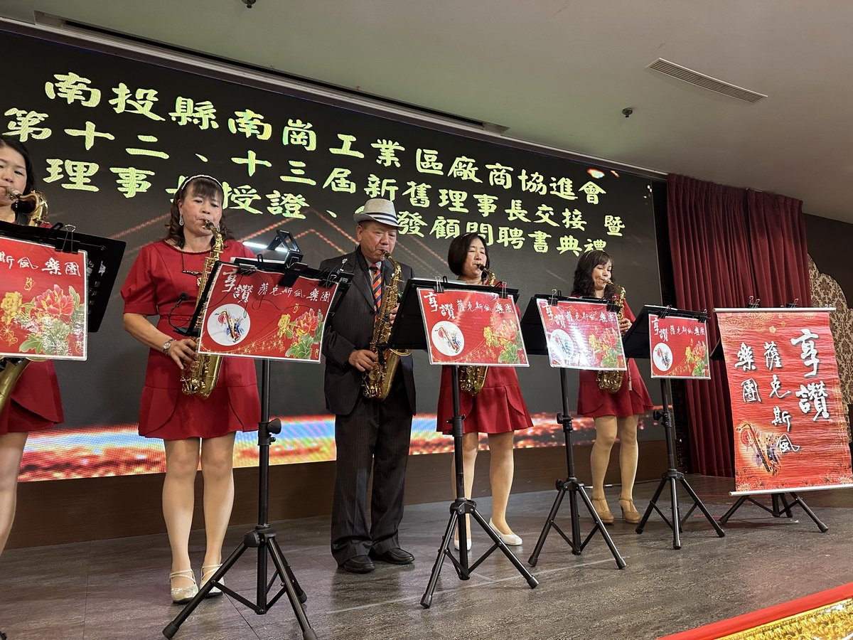 交接典禮由南崗工業區廠商協進會主辦,舉行新舊任理事長交接、理監事授證、顧問聘書頒發等多項儀式,氣氛熱鬧且溫馨。出席貴賓包括南投市長張嘉哲、縣議員林儒暘、簡千翔、張婉慈、張秀枝等人,及眾多企業代表與協會會員。