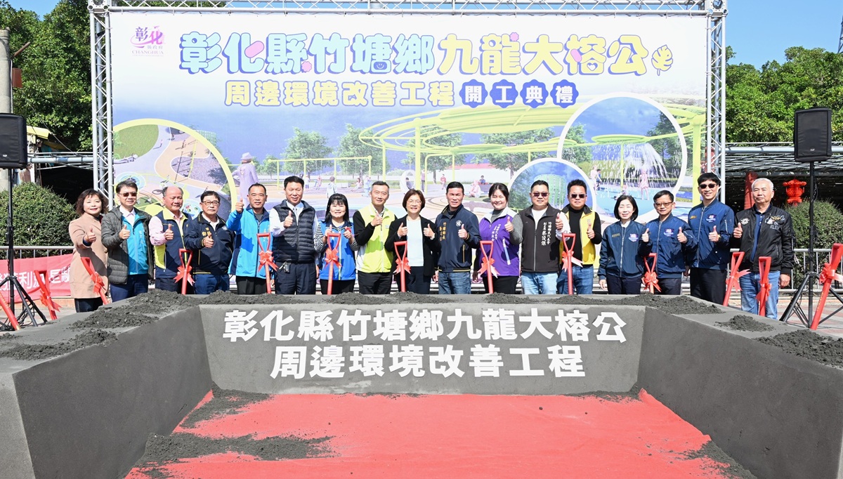 彰化縣政府於今日在竹塘鄉舉辦「彰化縣竹塘鄉九龍大榕公周邊環境改善工程」動土典禮,本次工程以「竹塘九龍大榕公」為核心,除改善竹塘大榕公舊有環境與設施,新設兒童遊戲場域,並銜接周遭休閒動線與景點,打造一處兼具宗教信仰、休閒遊憩與親子活動的複合型觀光園區。本案由縣府全額支付4,409萬4,237元,工期240日曆天,預計115年底完工。將能打造竹塘鄉的觀光遊憩新亮點,提供遊客與鄉親更友善及安全的公共空間。