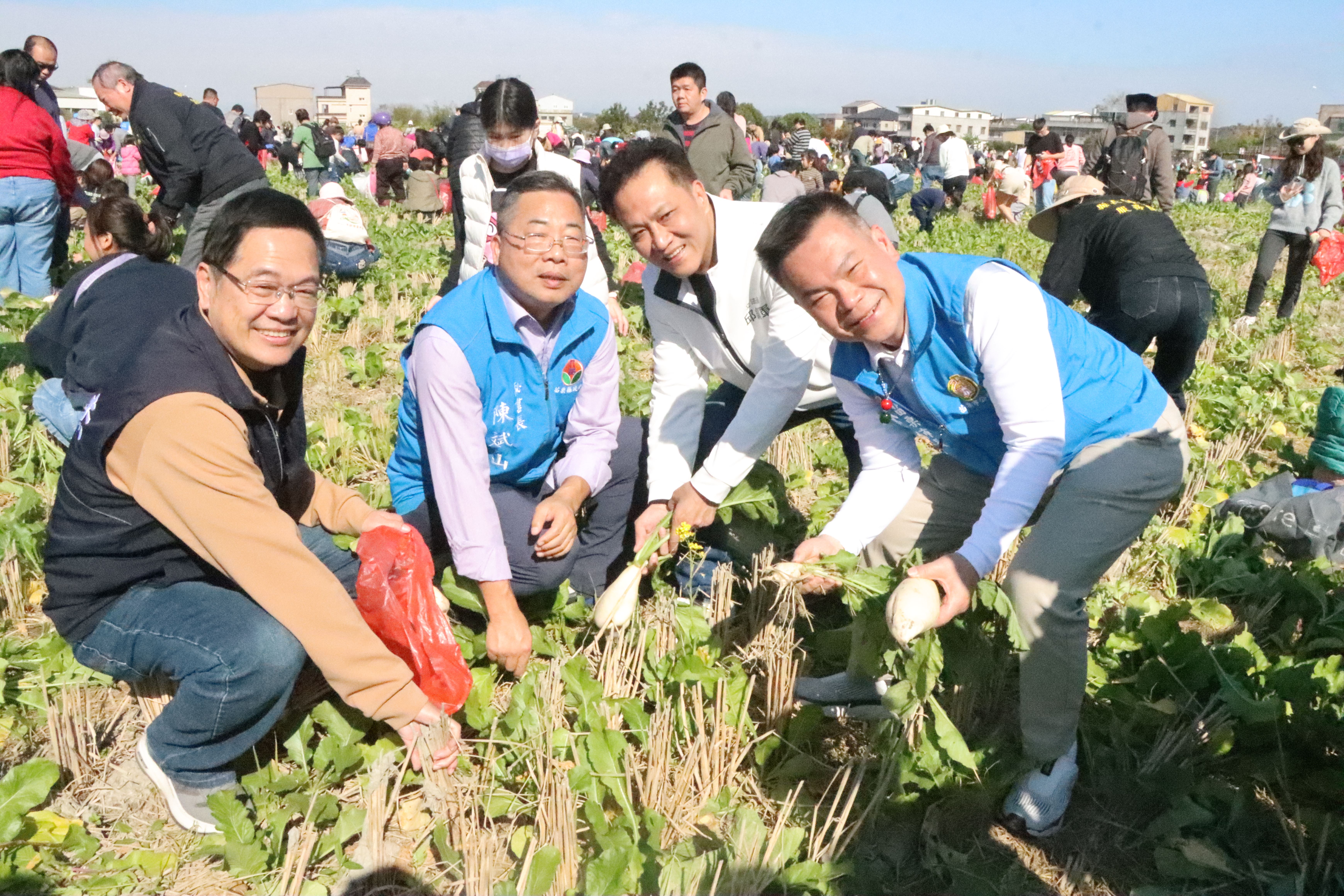 苗栗市公所與苗栗市農會首次攜手嘉盛、嘉新兩里發展協會,25日上午在嘉盛東街與東路交界處農田(嘉盛段931-936地號)共同舉辦「2026苗栗市親子樂活蘿蔔節」。秘書長陳斌山表示,透過親自下田拔蘿蔔,市民不僅能體驗農事樂趣,更能學習食物從產地到餐桌的過程,培養健康飲食習慣並感受農友的辛勞。