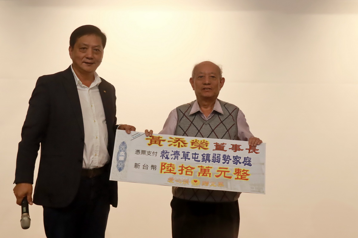 朝清宮主委黃添榮再捐贈60萬元予公所幫助弱勢。(記者扶小萍攝)