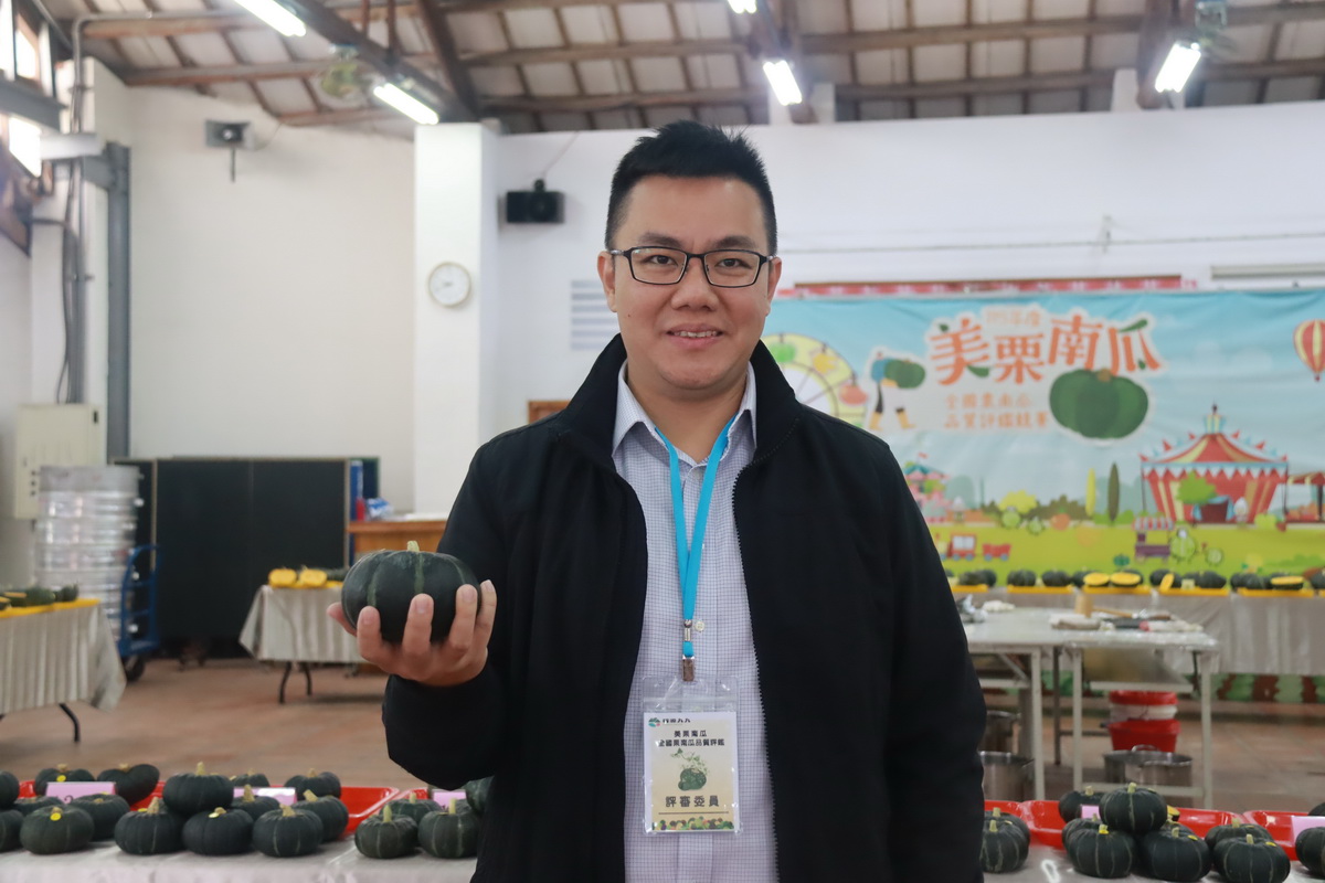 主審中區農改場副研究員林煜恒表示農友栽培技術都有精進。受氣候影響去年底田區受高溫與病毒等威脅,栽培受嚴苛挑戰。不過參賽各組外觀整齊度品質仍維持平均水準,農曆年前後大眾可多選購美味好吃栗南瓜。