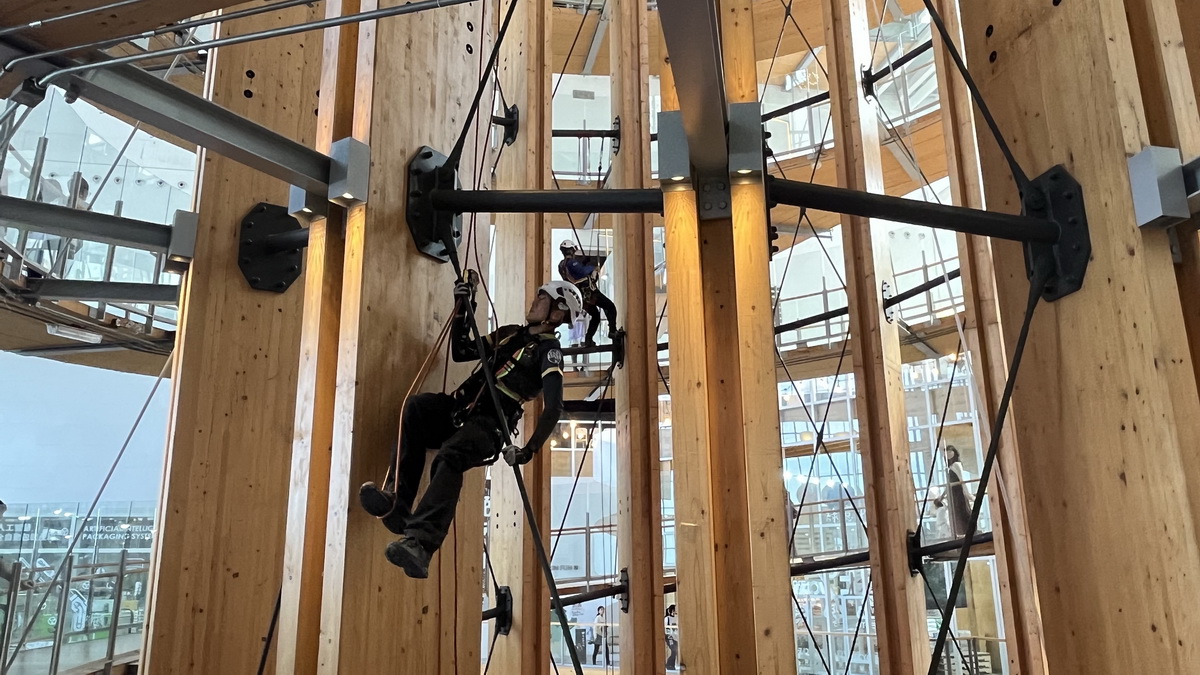 以生命巨樹形成南投地標的「樹德半山夢工廠」,31日迎來國際繩索救援專業「橋(Ch’iao)繩索救援菁英賽」第2天的賽事,夢工廠會場採高擬真救援情境與多元關卡設計,檢驗參賽隊伍於繩索救援技術、團隊協作、風險控管及現場判斷等能力,是一處難得的擬真救援情境場地。