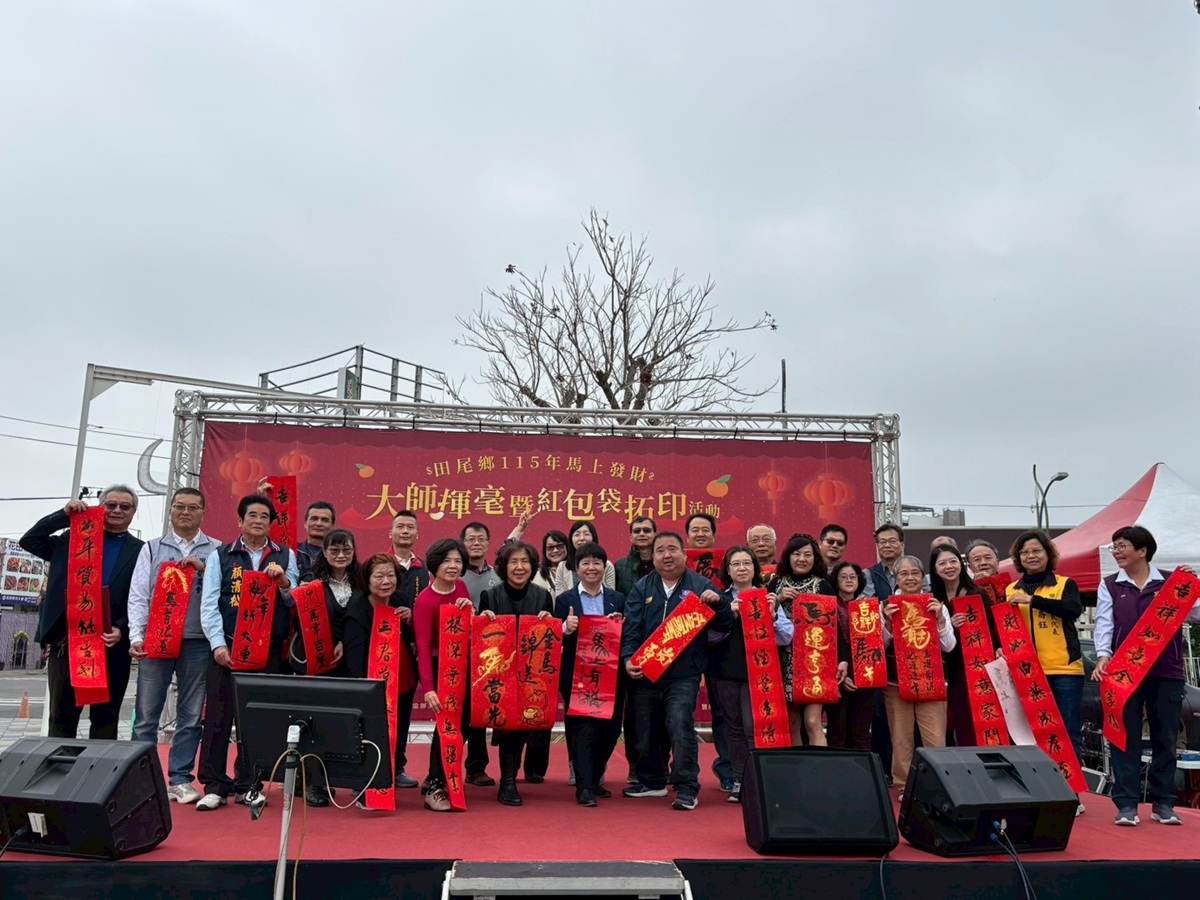 為迎接新春到來,田尾鄉公所於1月31日,在田尾怡心園北側廣場辦理「115年馬上發財~大師揮毫暨紅包袋拓印活動」,活動現場吸引了上千名鄉親共襄盛舉,共襄盛會,不僅讓怡心園充滿了過年熱鬧滾滾的氛圍,還彰顯了在地凝聚力和創造力。
