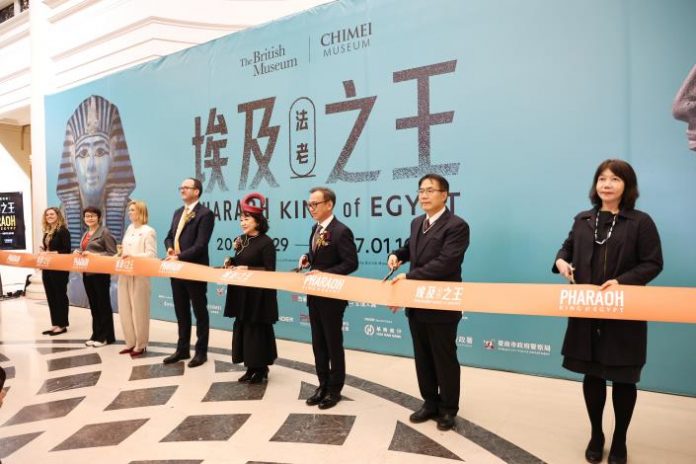 奇美博物館與大英博物館攜手推出台灣史上規模最大的法老文物特展《埃及之王:法老》,今(28)日舉行開幕典禮,台南市長黃偉哲下午特別出席,與國內外博物館界代表及貴賓一同揭開特展序幕。此次展覽集結大英博物館280件珍貴館藏,其中99%首度在台灣亮相,內容橫跨古埃及三千年歷史,並透過展場色彩與聲光設計,引領民眾近距離感受法老王權與文明發展。