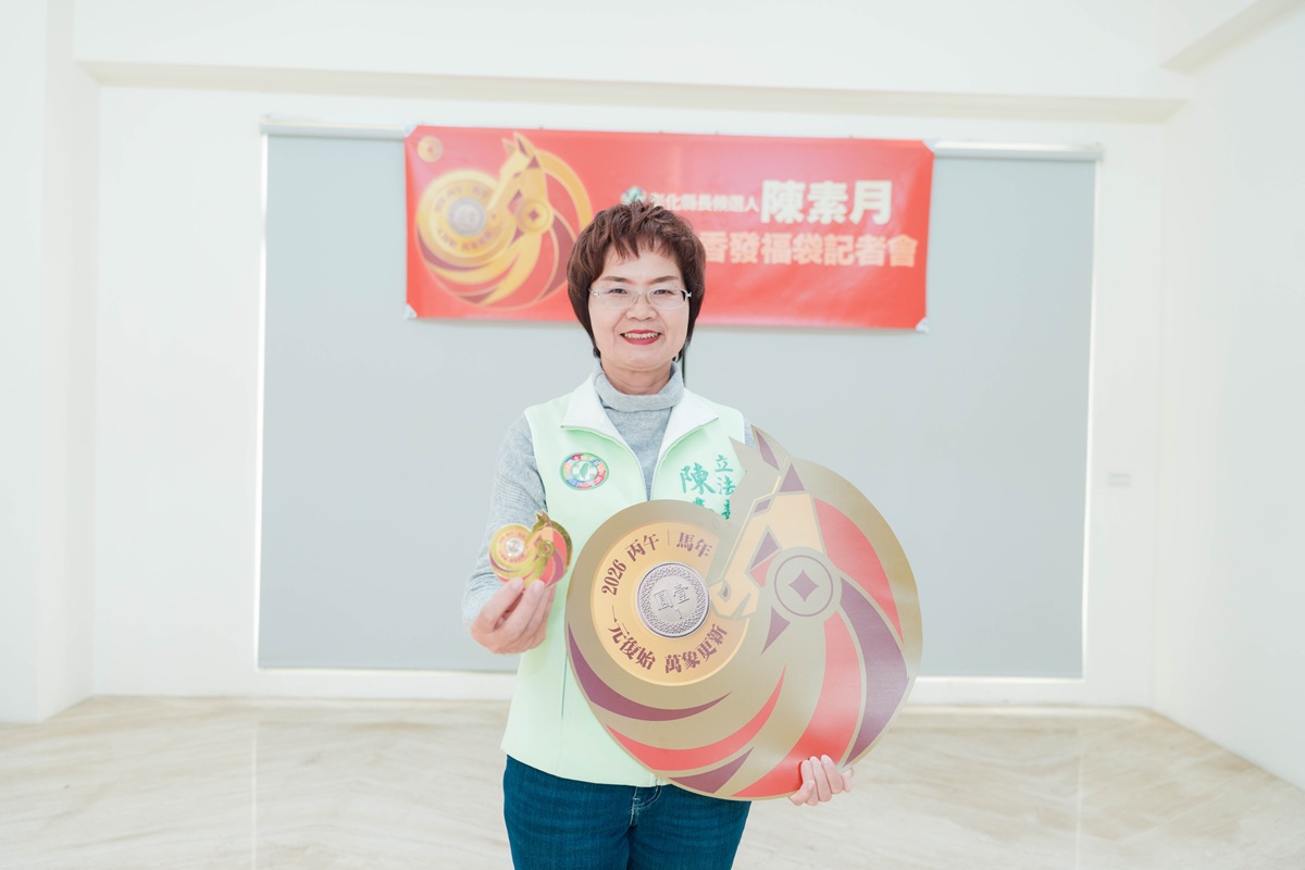 陳素月在現場親自打開福袋,說明這個福袋有三個祝福的意涵:一元復始:配合開運一元,寓意一年復始、萬象更新,彰化要迎來新氣象!一馬當先:幾項重大工程進度緩慢,要積極解決問題、加速完成的期程。讓彰化建設一馬當先、不再落後!馬上有錢:祝福鄉親在馬年百業興隆、財源廣進,隨著彰化建設進步、產業競爭力升級,在地鄉親都能薪資加碼,荷包滿滿。