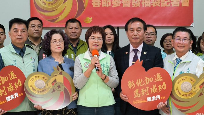 彰化縣長候選人陳素月於今(4)日二十四節氣之首的「立春」日,舉辦新春福袋發表記者會,正式亮相特製的「彰化加速」系列福袋。陳素月表示,立春象徵春天的開始,更是農民播種的時節,代表希望與轉機;她選在今日發表用奔騰的「紅色赤兔馬」作為主視覺的福袋,向鄉親傳達素月有服務的熱誠與動力,希望有機會帶領彰化縣,讓彰化重大的建設如赤兔馬般,勇往直前、衝破障礙、全速前進,讓未來的彰化縣在建設發展上能一馬當先!