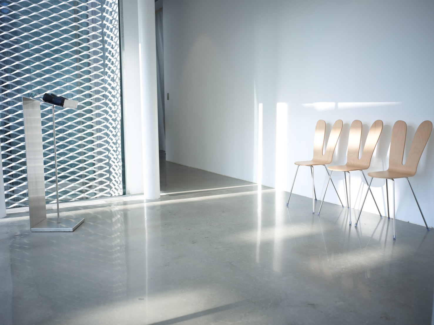 其中,連接美術館與圖書館的二樓連通橋設有一支望遠鏡,低頭可俯瞰大廳人流,捕捉建築中流動的節奏;美術館三樓斜坡一隅,望遠鏡對向美術館大廳,作品在光影中,細膩呈現時間推移下的光線變化。來到美術館五樓,望遠鏡藏身於C展覽室旁的外掛梯中,搭配兔子造型椅,彷彿一處秘密休憩角落,可遠眺文化之森與城市天際線,邀人靜靜停留。