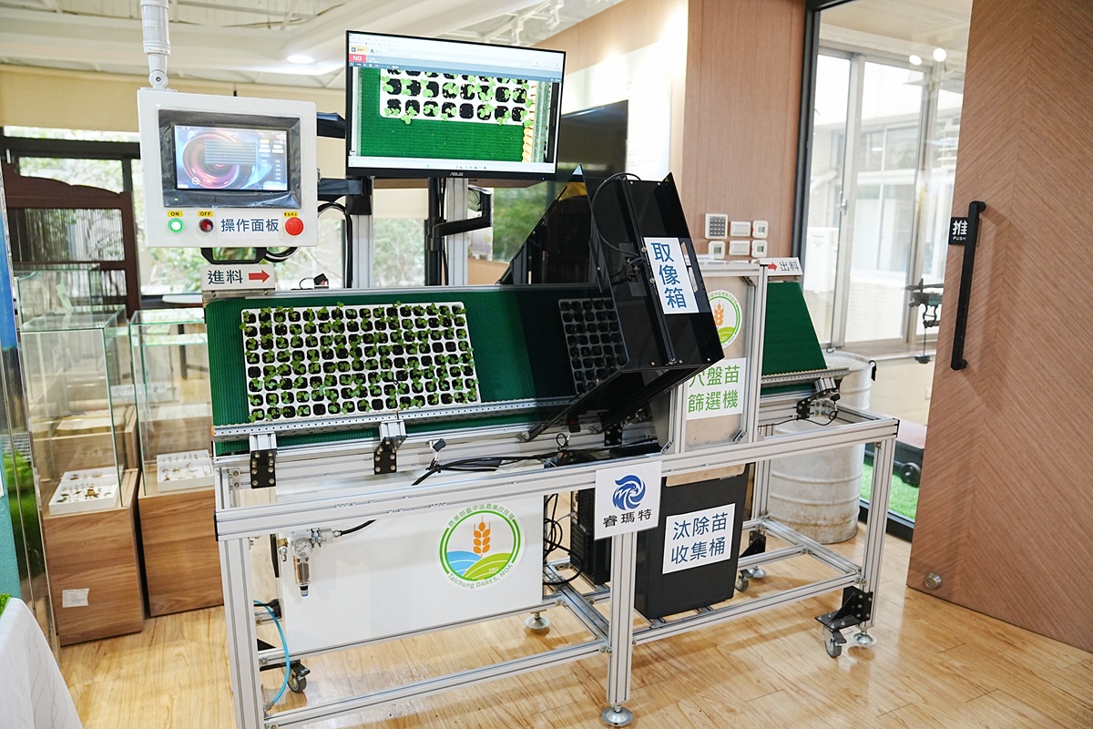 智慧:穴盤苗株篩選機 挑苗省工更精準:育苗場每日需處理大量穴盤苗,傳統人工挑苗作業耗時費力,且易因人員疲勞或經驗差異,影響出貨品質一致性,成為育苗產業長期缺工痛點。為回應產業需求,研發「穴盤苗株篩選機」,導入影像辨識與自動化控制技術,提升育苗作業效率與品質穩定度。