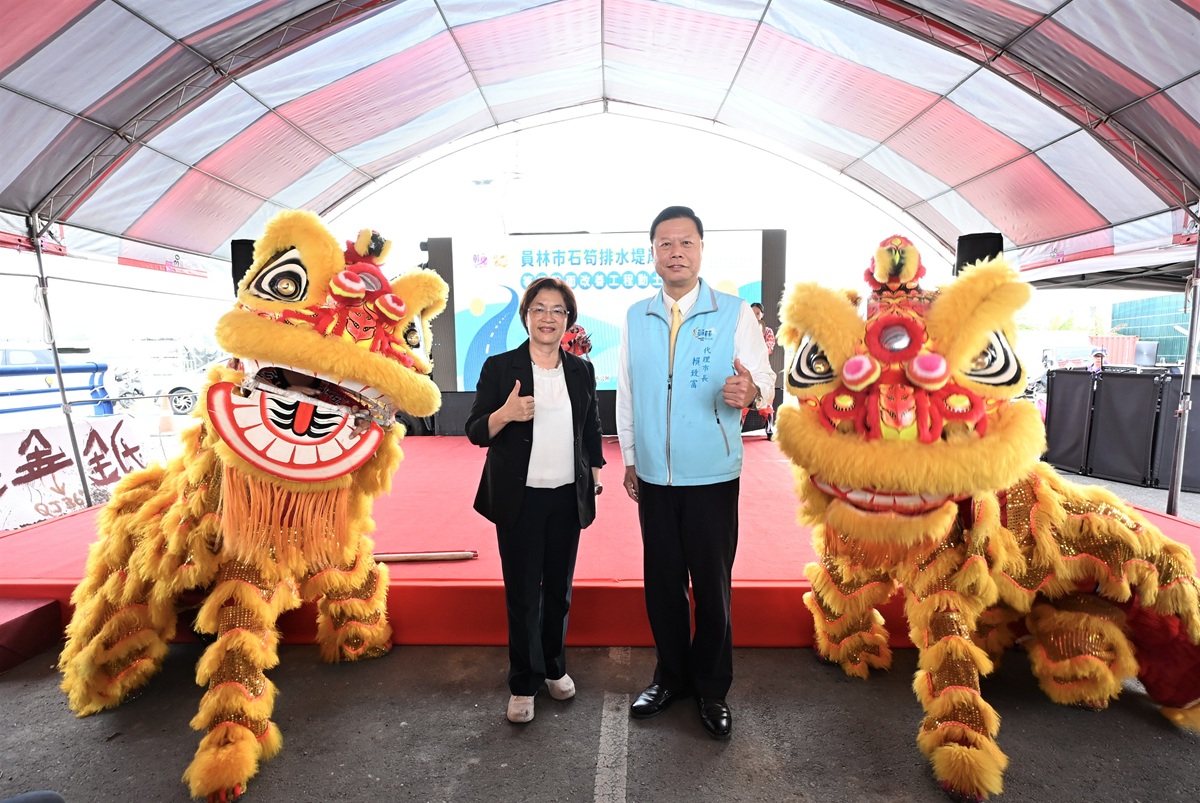 縣長王惠美表示,石笱排水的整治,總長約21公里,歷經15年,於民國110年完成石笱排水全線整治,有效提升防洪能力,縣府於111年將這段水防道路提升為一般道路,希望能保障鄉親行車安全且提升整體通行環境,感謝員林市公所及代表會的用心與協助,從前市長游振雄到現在的員林市代理市長賴致富,兼顧原有的水防功能,進一步提升石笱排水兩側道路改善工程約3.1公里,兩側總長度共約6.2公里,縣府與市公所經多次討論後,共同來完成,感謝議長謝典霖及議員們對預算的支持,縣市合作與府會齊心推動地方建設的決心,未來設置交通安全標線標誌,完工後不僅改善路面平整,也讓大家行的更加安全。