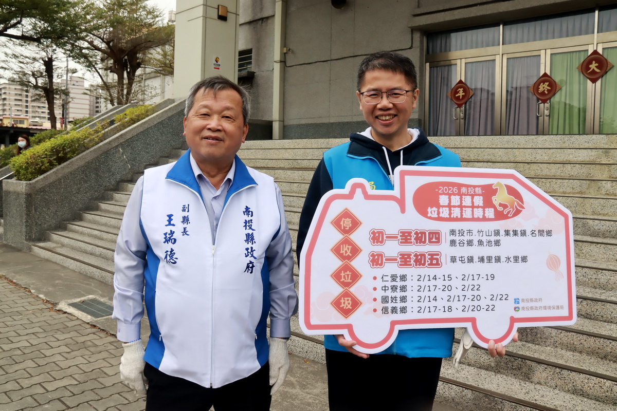 環保局長李易書也指出,春節前大掃除是傳統習俗,環保局率隊清潔南投市環境,提醒民眾及早進行居家大掃除。全縣春節垃圾收運南投、竹山、集集、名間、鹿谷、魚池鄉鎮市初一至初四停收,初五起恢復,請大家做好垃圾減量、妥善存放,初五再外出倒垃圾。另草屯、埔里、水里初一至初五停收。仁愛、中寮、國姓、信義各有不同停收日期。