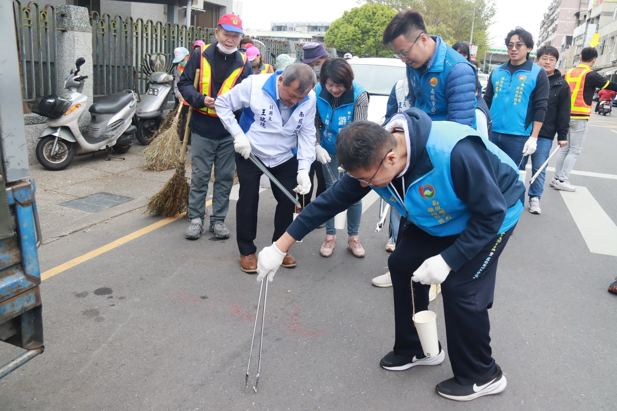 撿煙蒂、掃街、清垃圾!環境乾淨過好年!南投縣府環境保護局7日上午在南投市舉辦「馬力全開.潔淨南投」年終大掃除,號召環保局人員、南投市公所及各社區環保志工隊共約180人參與整頓道路,為即將到來的農曆春節營造更美好環境,副縣長王瑞德、市長張嘉哲都祝福民眾新春馬年行大運馬到成功。